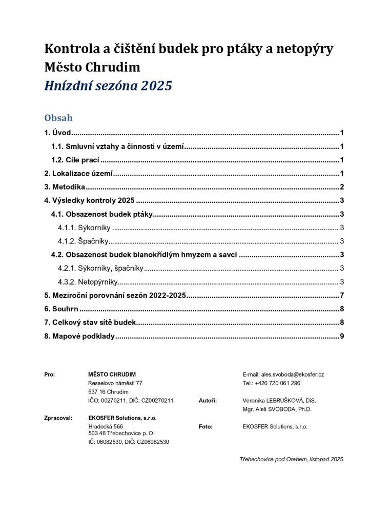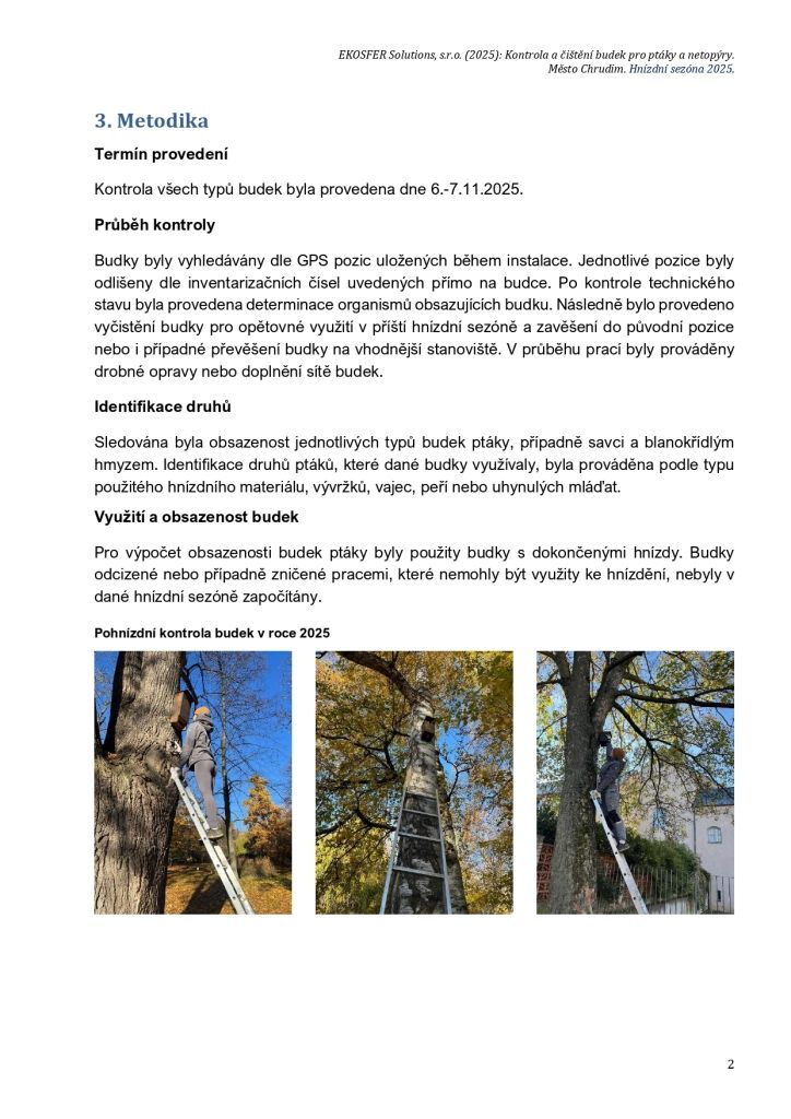 Zatímco se ulice ukládají k zimnímu klidu, v korunách stromů se uzavírá další rok drobného, ale nesmírně důležitého příběhu. Příběhu chrudimských ptačích budek. Pracovníci společnosti EKOSFER Solutions provedli v listopadu 2025 pravidelnou kontrolu a čištění všech budek instalovaných v rámci projektu „Vraťme ptačí zpěv do města“.