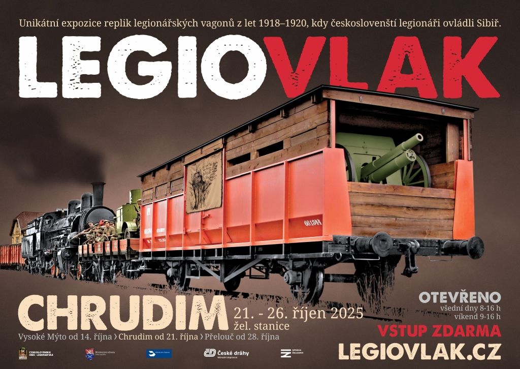 Unikátní expozice replik legionářských vagonů z let 1918–1920, kdy českoslovenští legionáři ovládli Sibiř, bude přístupná veřejnosti od 21. do 26. října 2025 na železniční stanici v Chrudimi.